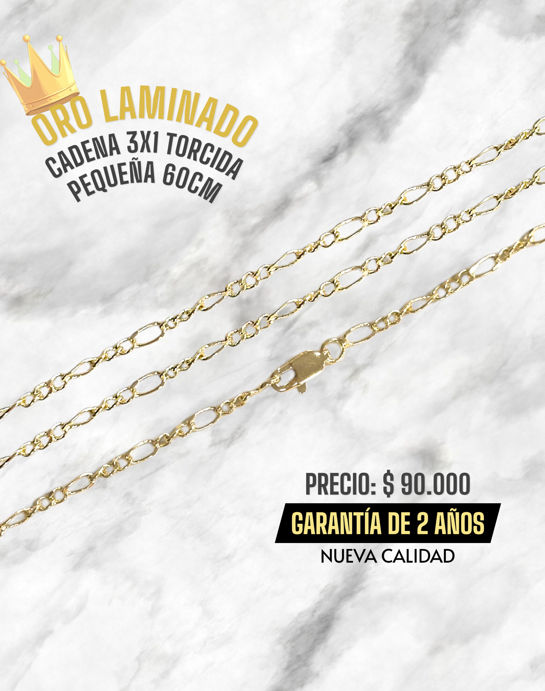 CADENA 3X1 TORCIDA PEQUEÑA 60CM NUEVA CALIDAD ORO LAMINADO