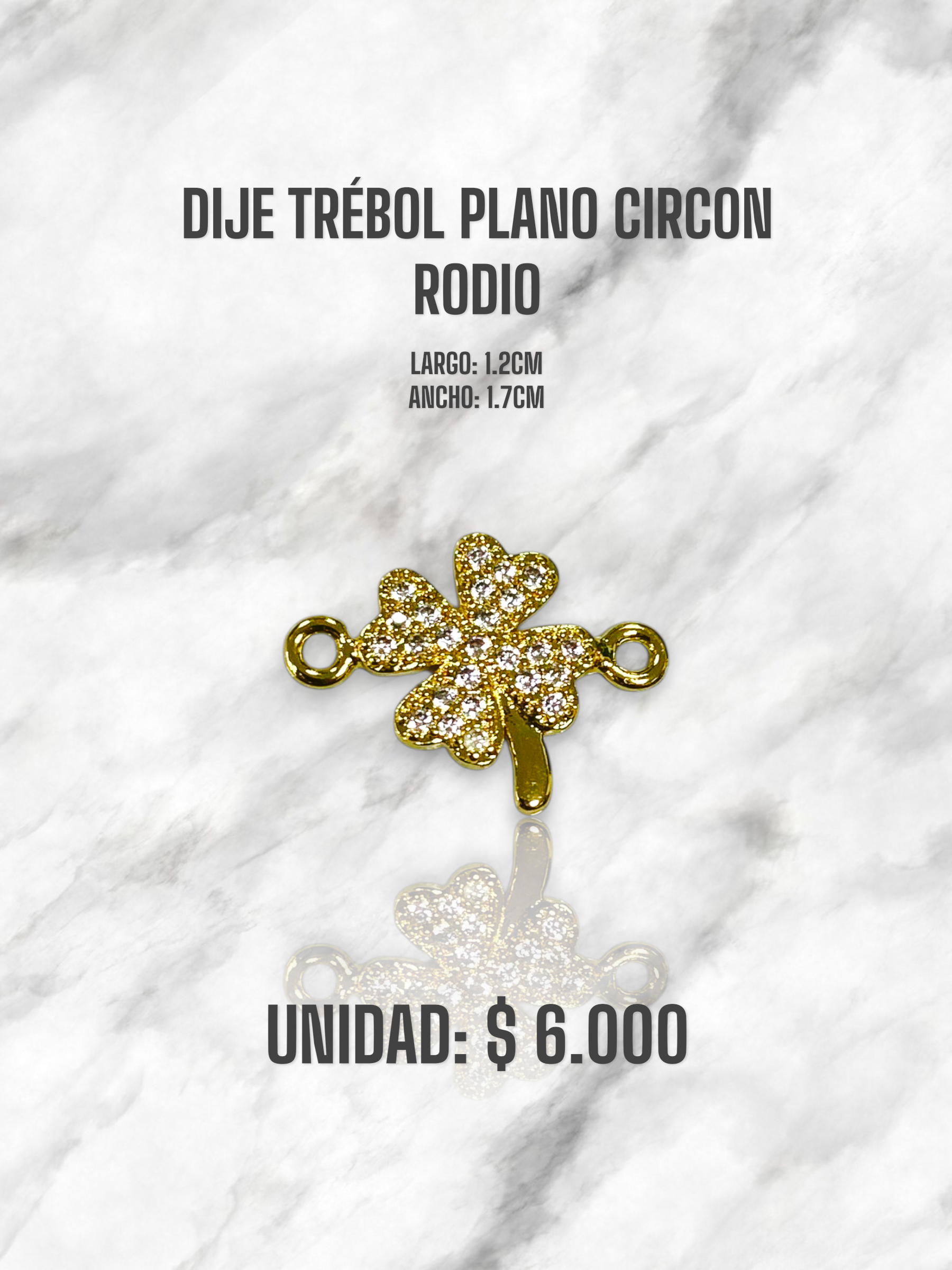 DIJE TRÉBOL PLANO CIRCON RODIO