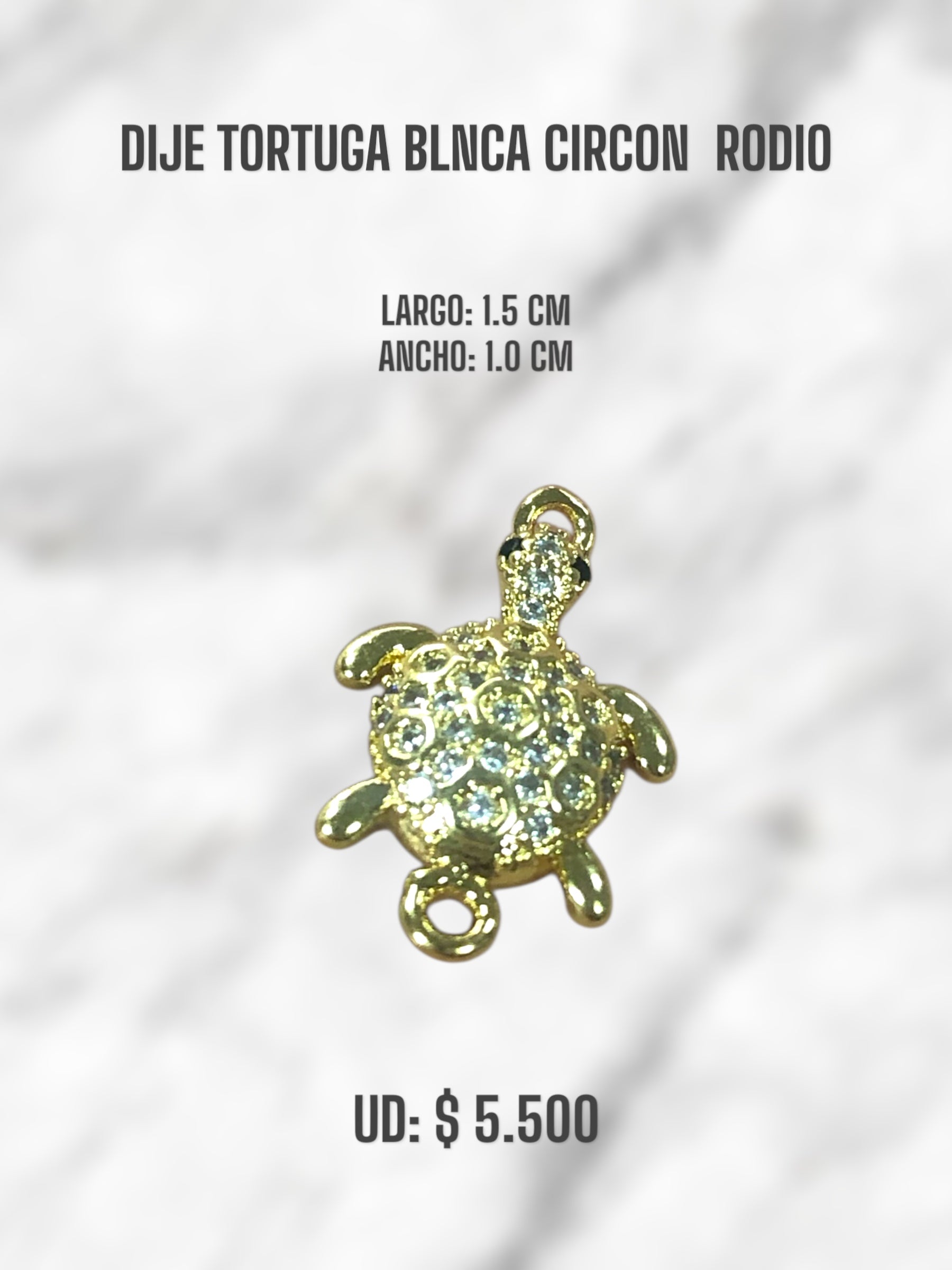 DIJE TORTUGA BLANCA CIRCON RODIO