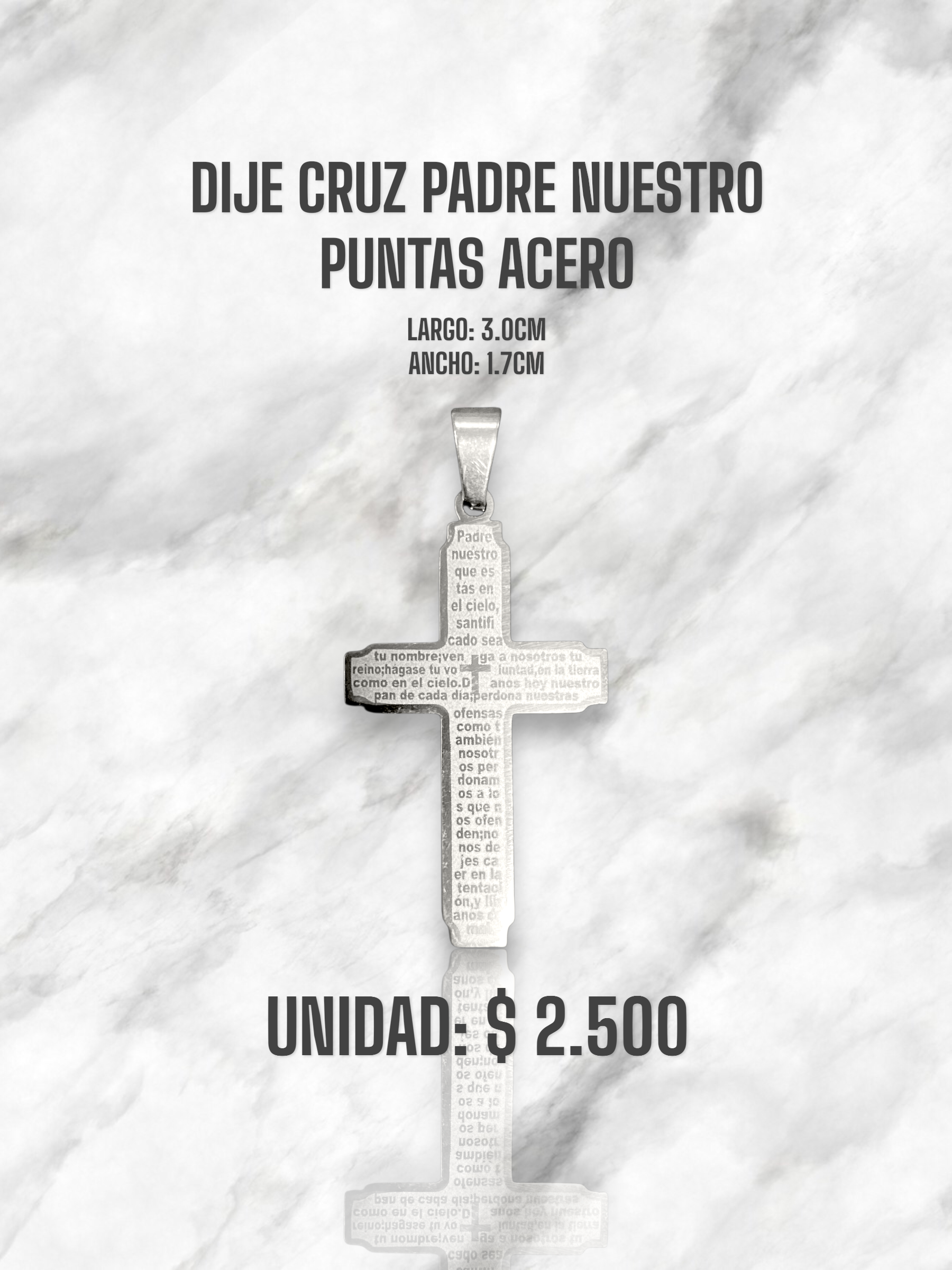 DIJE CRUZ PADRE NUESTRO PUNTAS ACERO PLATEADO