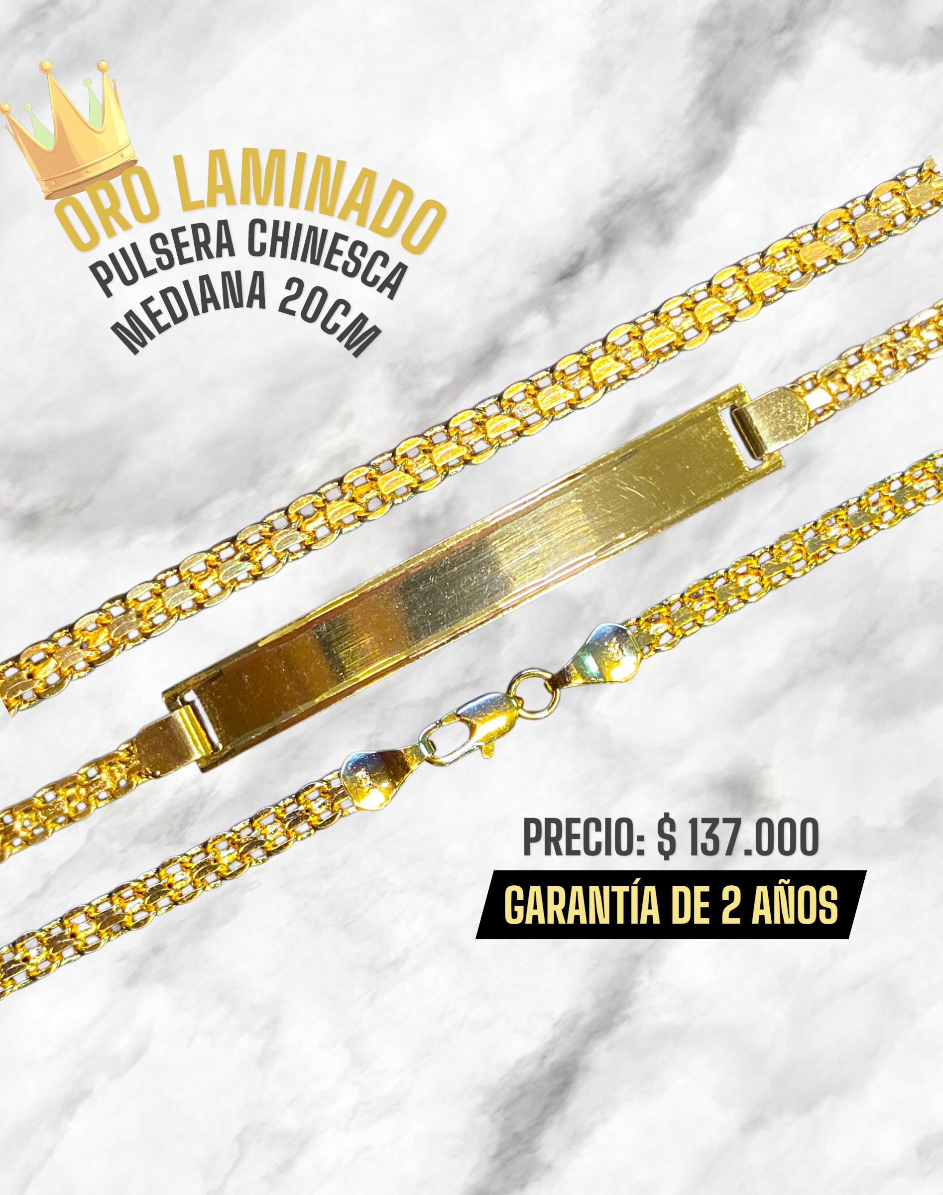 PULSERA CHINESCA MEDIANA CON PLACA 20CM ORO LAMINADO