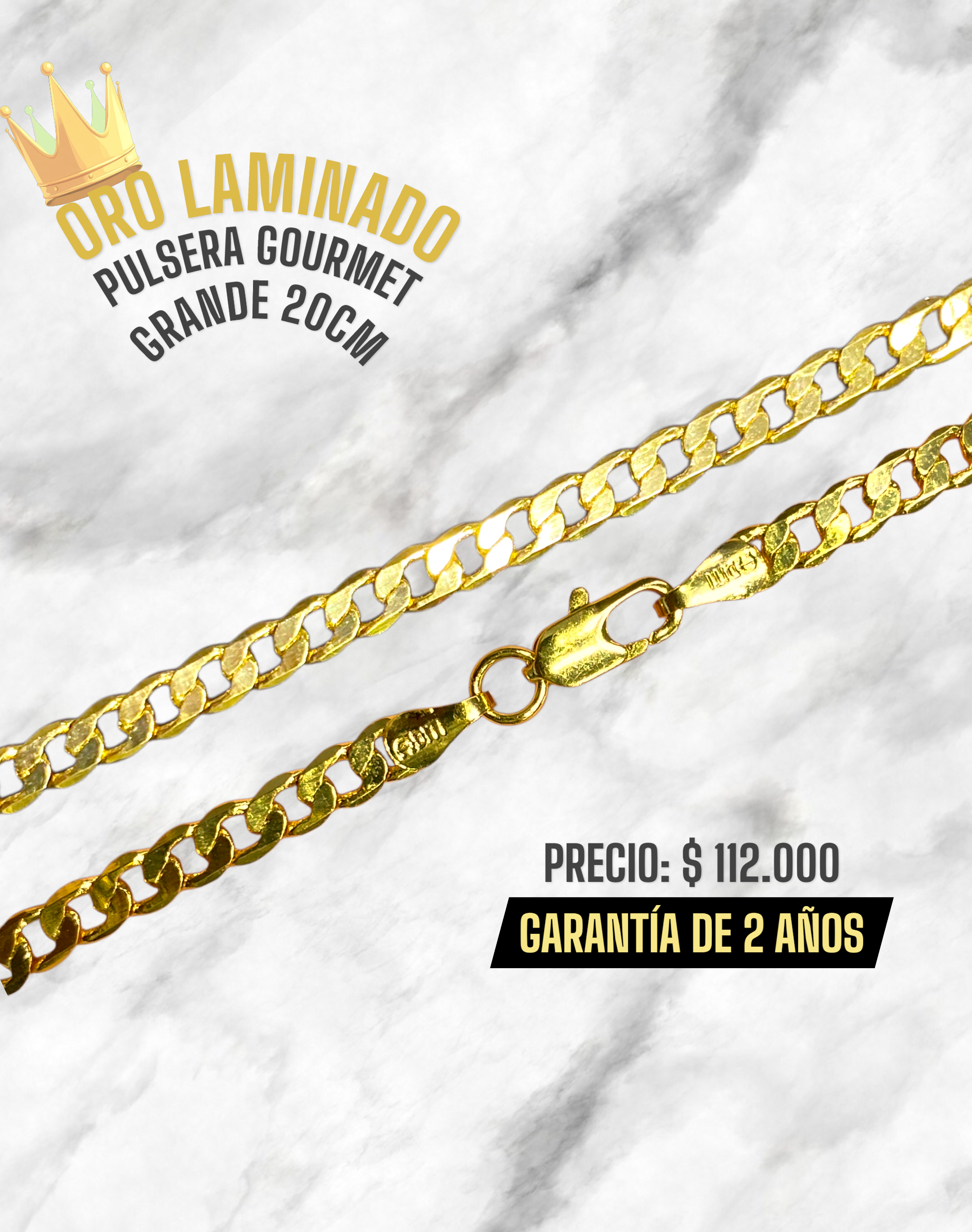 PULSERA GOURMET GRANDE 20CM ORO LAMINADO