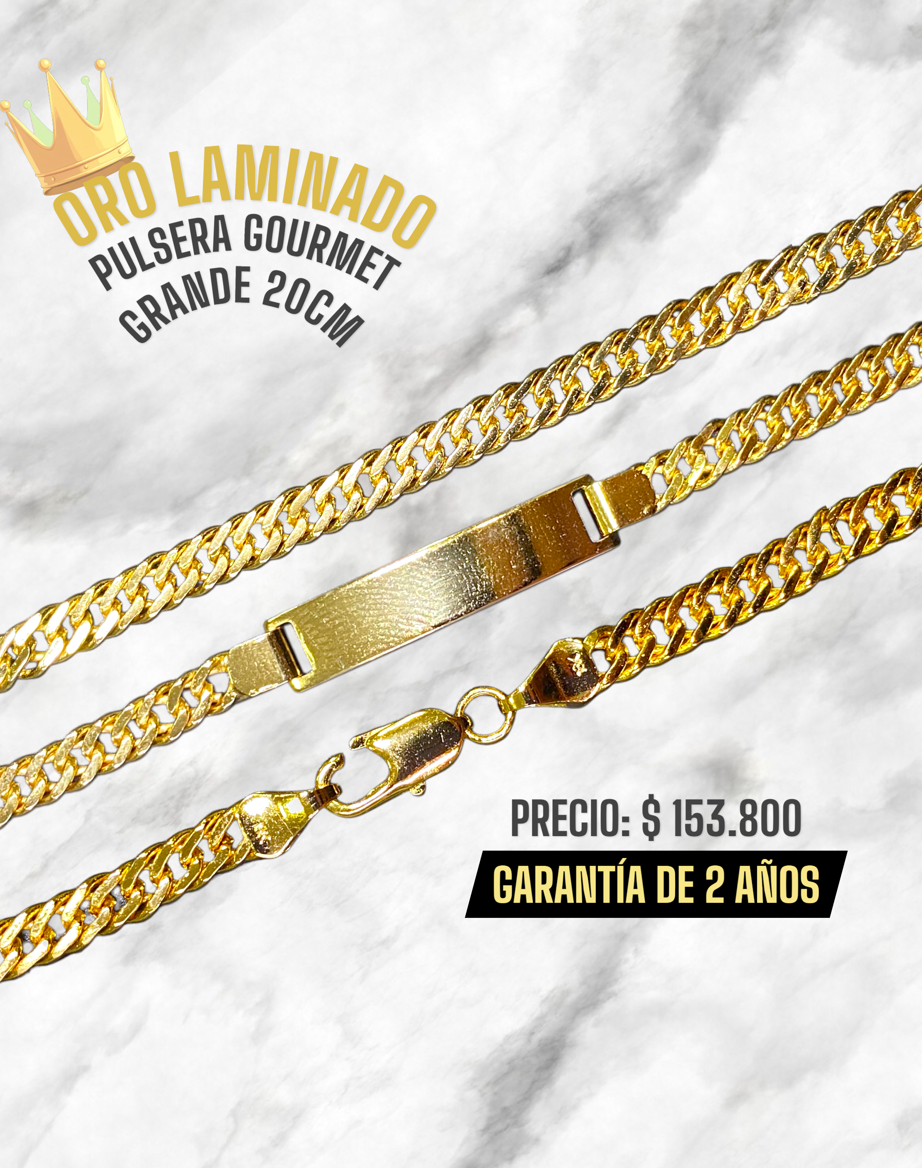 PULSERA GOURMET GRANDE CON PLACA 20CM ORO LAMINADO